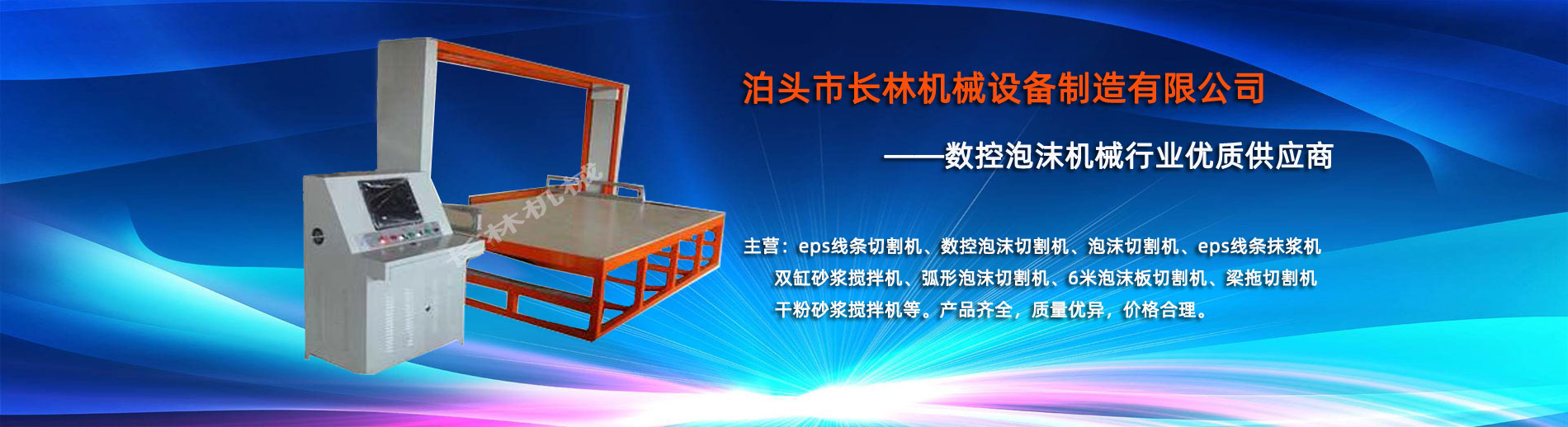 泊頭市長(zhǎng)林機(jī)械設(shè)備制造有限公司座落于河北省泊頭市開發(fā)(fā)區(qū)(qū),地處北京、天津、濟(jì)南、石家莊中心位置。京滬高速、京滬鐵路、106國道、104國道穿行于本市,交通便利。 本公司是集多功能數(shù)(shù)控泡沫切割機(jī)的自主研發(fā)(fā)、生產(chǎn)、銷售和服務(wù)于一體的企業(yè)(yè),eps線條設(shè)備,數(shù)(shù)控泡沫切割機(jī),發(fā)(fā)泡陶瓷切割機(jī),eps線條切割機(jī)銷往全國各地,并開辟了國際合作的廣闊渠道。創(chuàng)(chuàng)新不斷的長(zhǎng)林?jǐn)?shù)控機(jī)械有限公司經(jīng)過幾年的不斷研究,完善了建筑裝飾構(gòu)件的配套設(shè)備和自動(dòng)化設(shè)備,由過去手工生產(chǎn)到半自動(dòng)生產(chǎn)發(fā)(fā)展到現(xiàn)(xiàn)在的CNC控制的全自動(dòng)零誤差數(shù)(shù)控泡沫切割機(jī)床。不但讓客戶在交貨期上面爭(zhēng)取了時(shí)間而且···